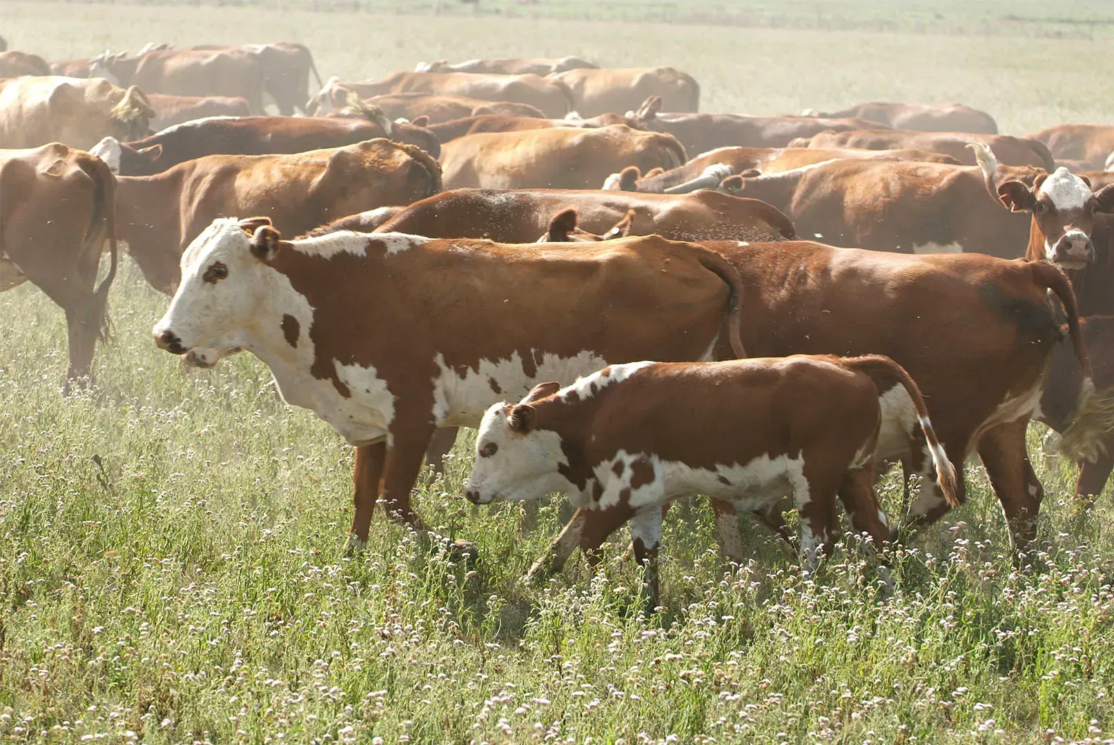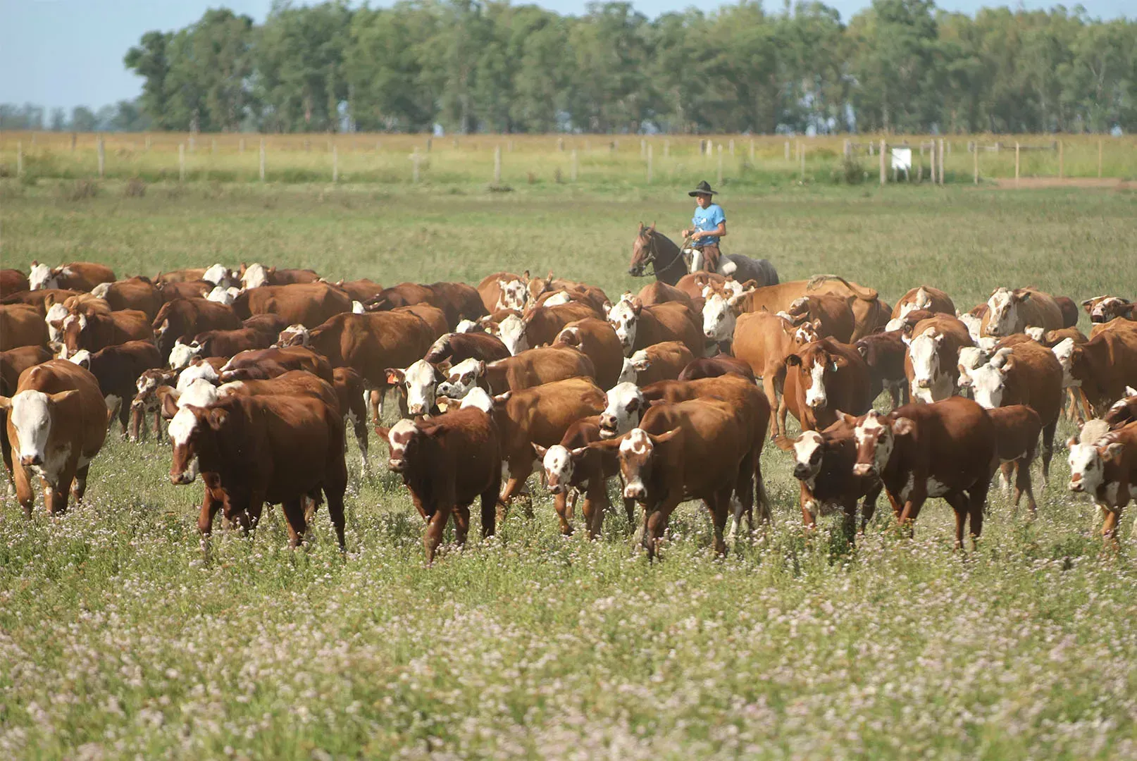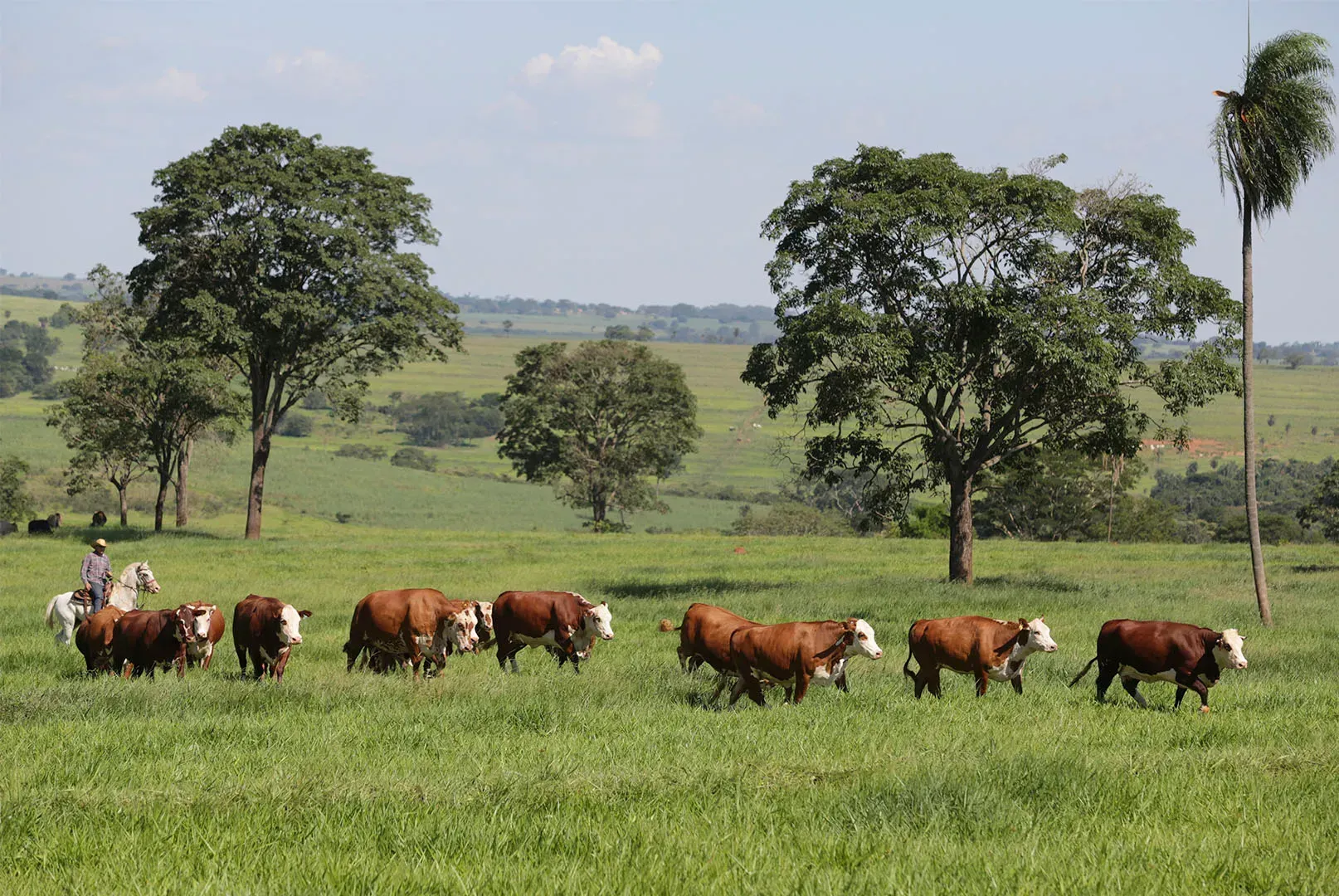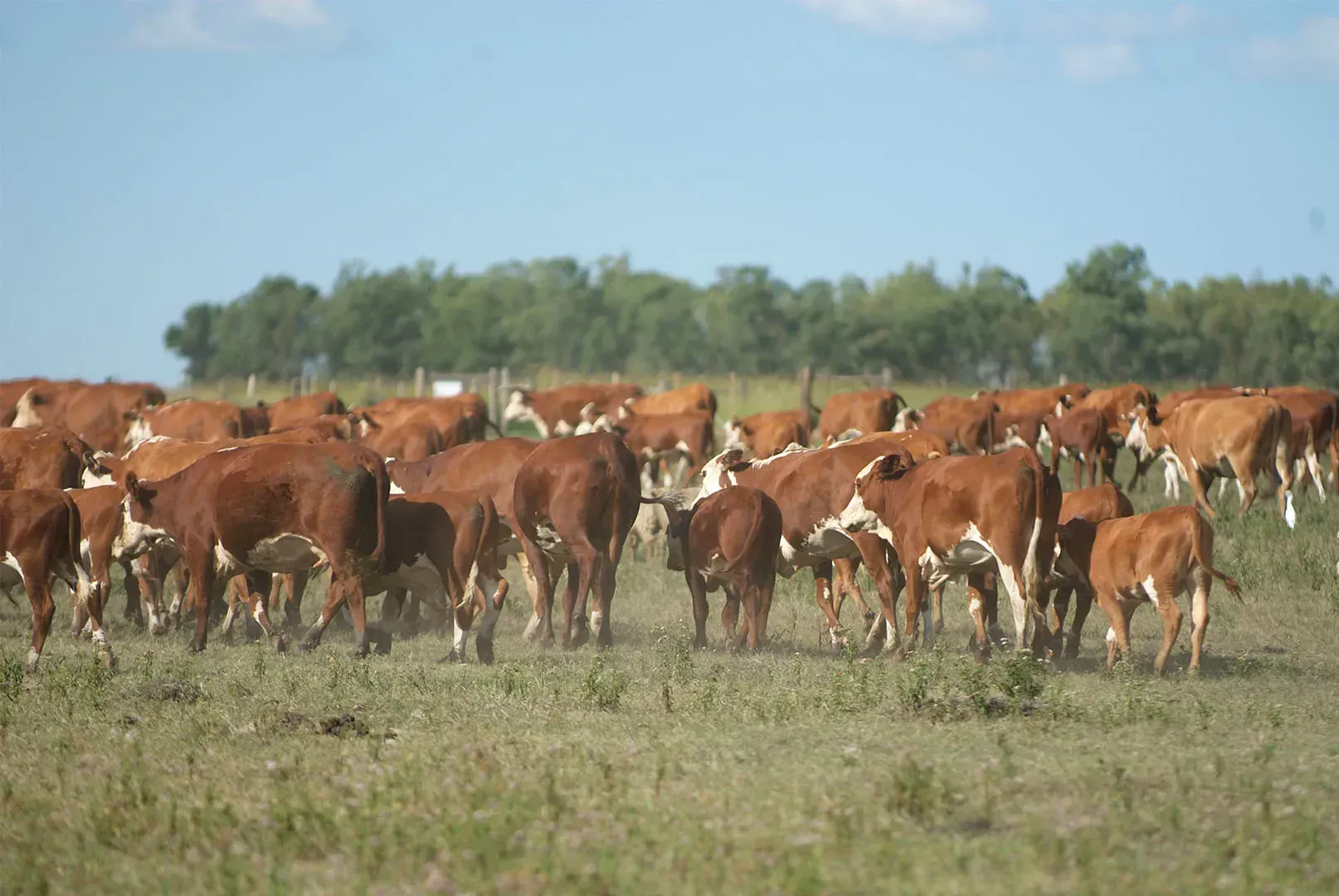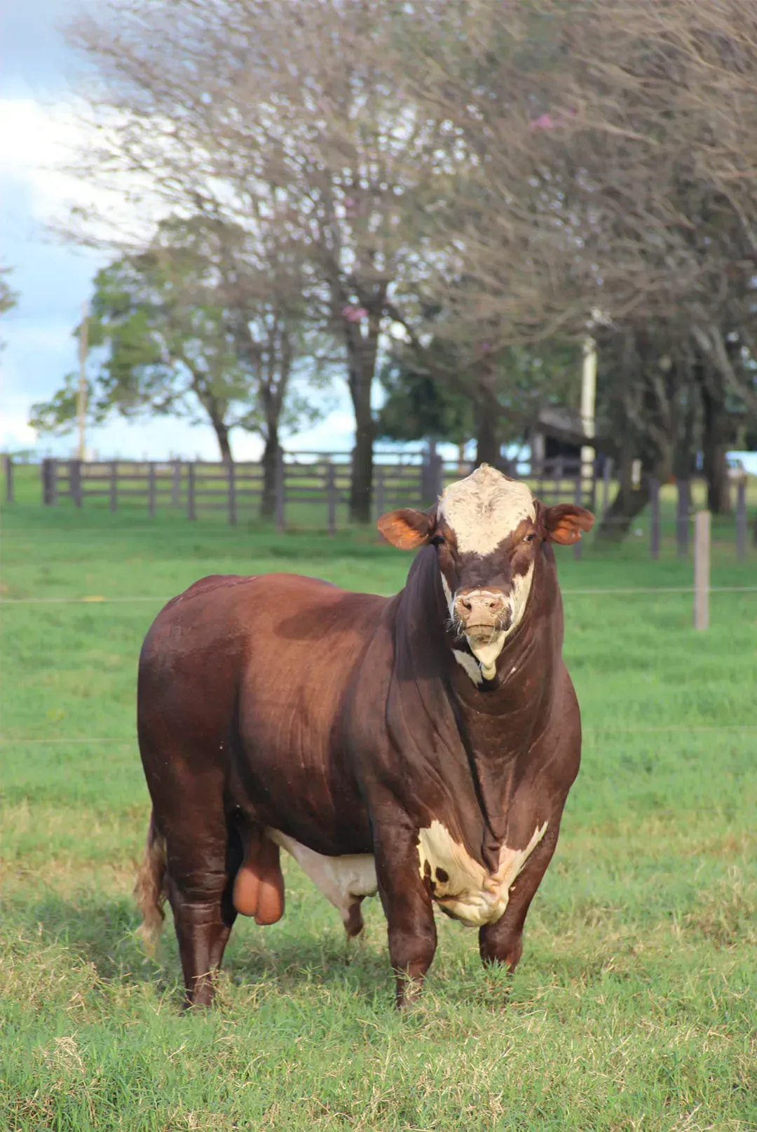 O gado é aproximadamente 3/8 da Brahman e 5/8 da Hereford.