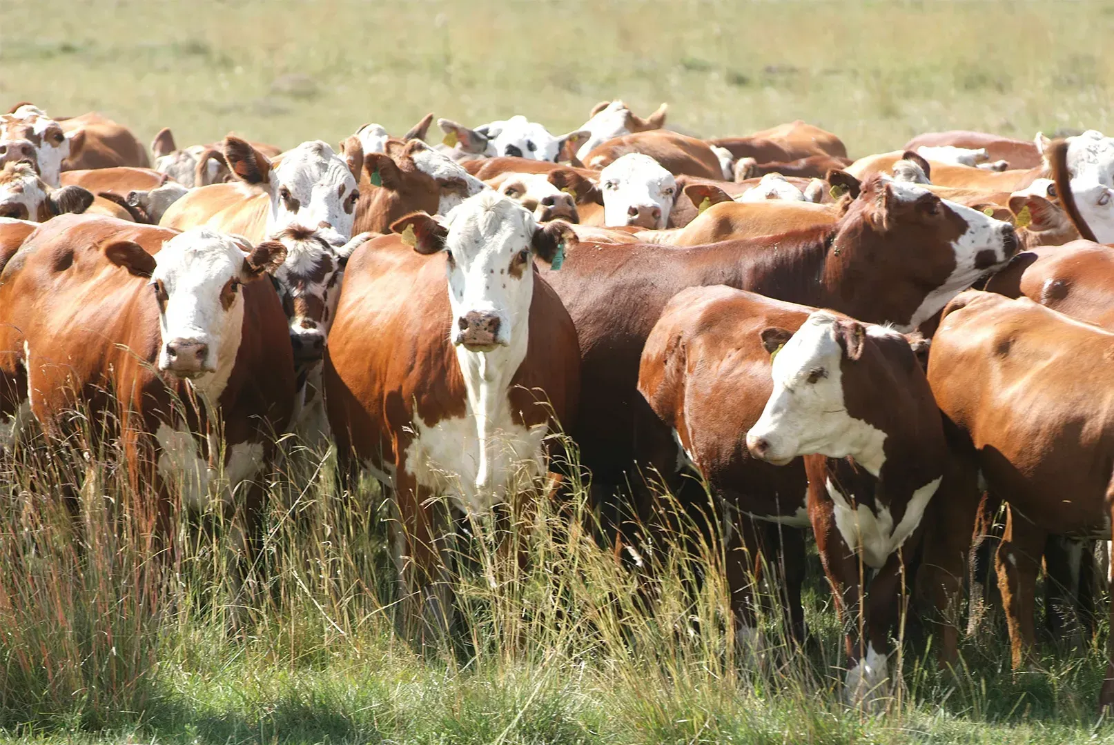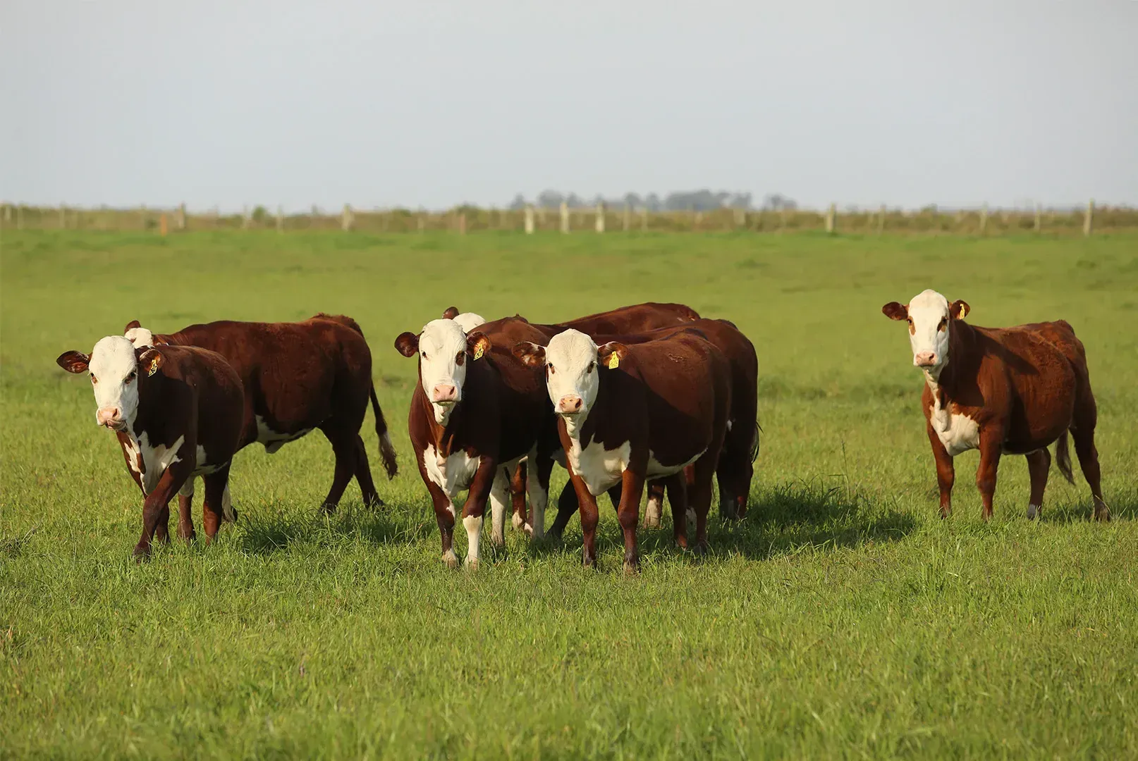 Herefords geralmente são dóceis e de rápido crescimento, com boa qualidade de carne bovina.